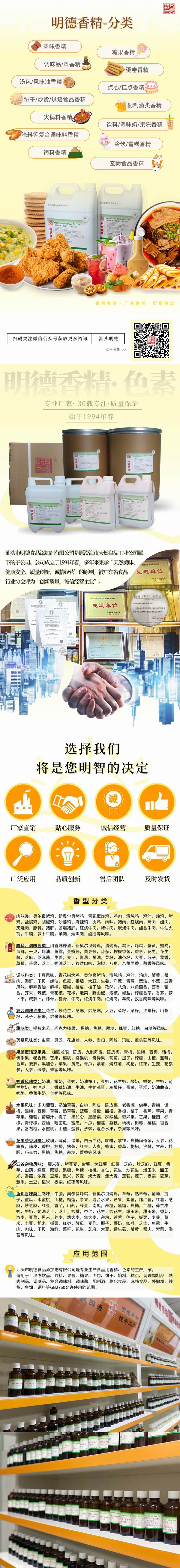 同時(shí)性狀方面,有液體-水溶性香精、液體-油溶性香精、粉末香精供您選擇。