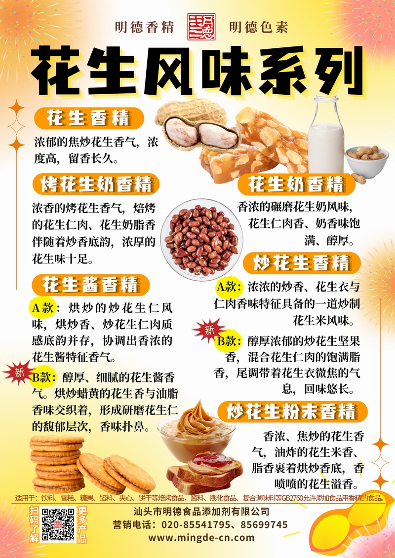 如需索取不同款花生香精樣品或配方應用指導,歡迎聯(lián)系明德團隊。